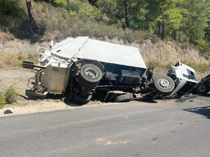 Antalya'nın Alanya ilçesi Karakocalı Mahallesi'nde meydana gelen kazada, M.K. (30) idaresindeki Alanya Belediyesi'ne ait çöp kamyonu yokuş aşağıya inerken freni boşaldı. Sürücüsünün kontrolünden çıkan kamyon devrildi. Kazada, kamyonun sürücüsü M.K. ile yanındaki temizlik işçilerinden İsmail Keleş (29) ve İ.Ö. (57) yaralandılar.