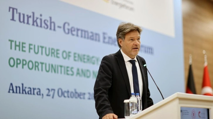 Habeck, Eti Maden Genel Müdürlüğünde Enerji ve Tabii Kaynaklar Bakanı Alparslan Bayraktar'ın da katılımıyla düzenlenen 5. Türk-Alman Enerji Forumu'nda konuştu.