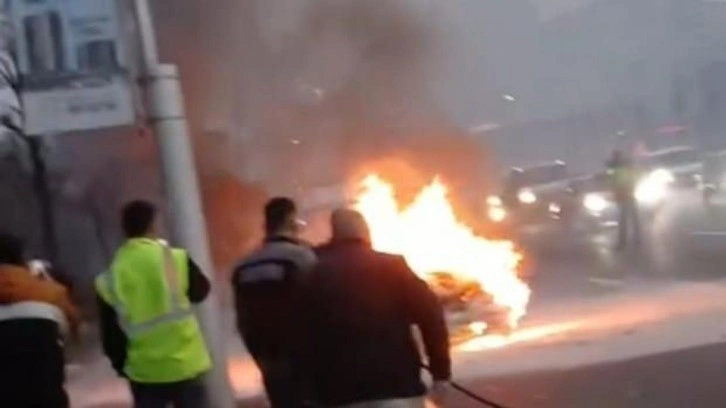 Çevredeki vatandaşların yangın tüpleri ile müdahale etmesine rağmen otomobil alev alev yandı.