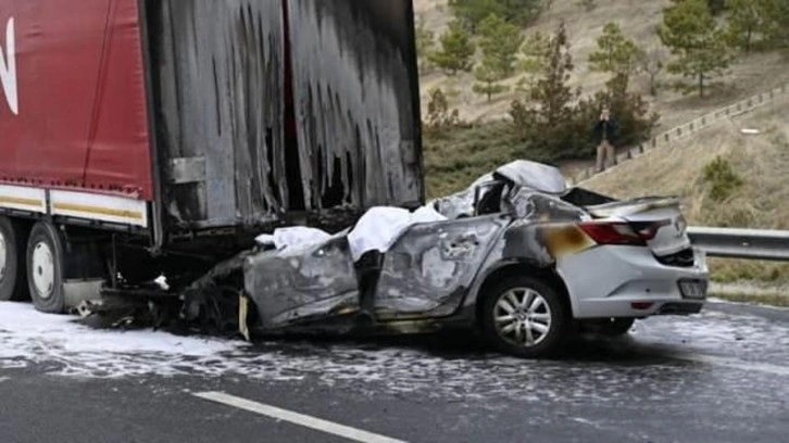 Gölbaşı yönüne giden K.B. yönetimindeki otomobil, aynı yöne giden TIR'a arkadan çarptı. TIR'ın ardında yaklaşık 70 metre sürüklenen otomobil, alev alarak yanmaya başladı.