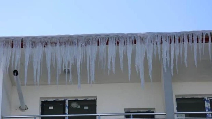 Termometrelerin gece eksi 20 dereceyi gösterdiği ilçede, çatılarda uzun buz sarkıtları oluştu, yol ve kaldırımlar buzla kaplandı.