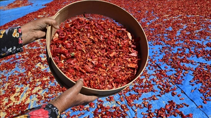 Acısı ve aromasıyla bilinen, 2020'de tescil edilen Cırgalan biberi, ağustos ayından itibaren hasat edildikten sonra kadınlar tarafından temizlenip parçalara ayrılarak kuruması için damlara, mahallenin boş alanlarına seriliyor.