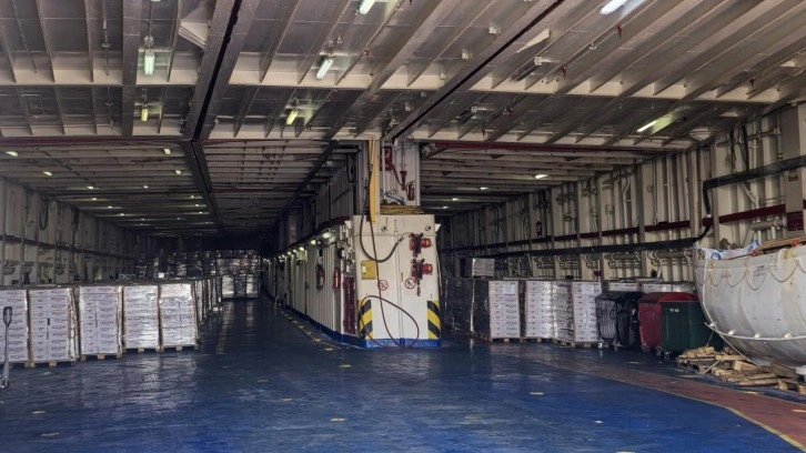Gemideki yaklaşık 900 tonluk insani yardım malzemesi arasında bebek maması, hazır gıda, konserve ürünler ve temel ihtiyaç malzemeleri yer alıyor.