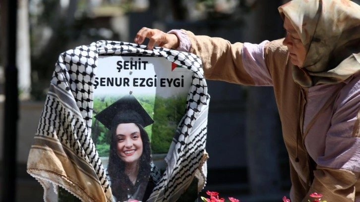 Mezar taşında Ayşenur'un fotoğrafıyla birlikte "Ayşenur'un anısı dünyanın vicdanlı insanlarının barış ve adalet mücadelesinde yaşayacaktır. Ruhu şad olsun" yazısı yer aldı.