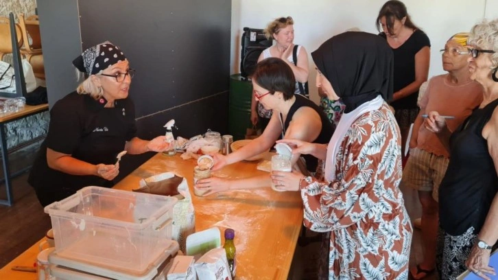 Milli Eğitim Bakanlığı bünyesindeki Ayvalık Mutluköy Yaşam Merkezi'nde gerçekleştirdikleri ekşi maya ekmek atölyesini 3 periyotta hayat geçirdiklerini anlatan Nevin Us, “İlk bölümde; unları ve ekmeği anlatan teorik bilgiler ve sıfırdan ekşi maya üretimini yaptık. İkinci bölümde, hazırladığımız ekşi maya ile artızan ekmek yapımını gerçekleştirdik. Üçüncü bölümde ise ürettiğimiz ekşi maya ile artızan ekmek hamurumuzun çizimi, pişirilmesi ve zeytinyağı eşliğinde tadımını yaptık” diye konuştu.