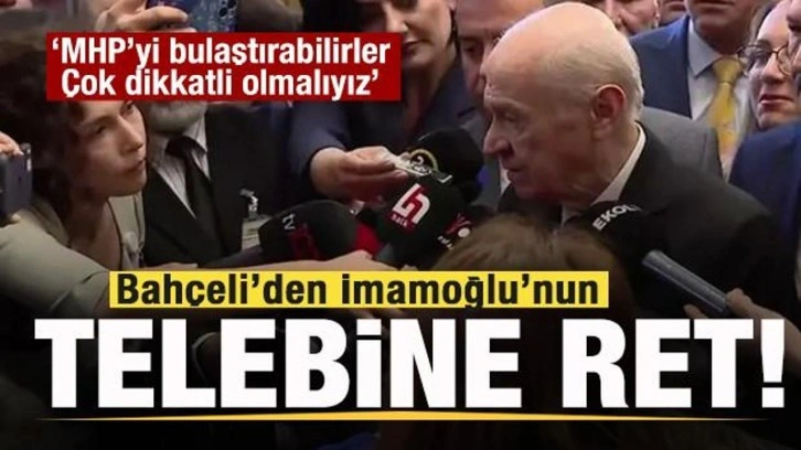 Bahçeli açıklamasında ''Ne maksatla randevu talebinde bulundular bilemiyorum. Ekrem İmamoğlu'nun siyasetini tasvip etmediğim için kendisiyle görüşmeyi uygun bulmuyorum. Bu görüşmeden istismarla Türkiye'de bazı gelişmelere MHP’yi de bulaştırmak isteyebilirler. Biz çok dikkatli olmak mecburiyetindeyiz.'' ifadelerini kullandı.