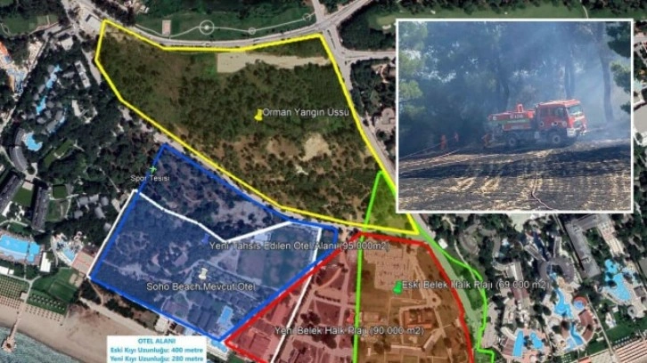 İddialara konu olan 83 dönümlük orman alanının, 1990 yılında Serik Belediyesi’ne kesin tahsis edildiği öğrenildi. Ancak kamping alanı olarak planlanan bölge, belediye yönetiminin kararıyla otel tesisi yapılması amacıyla özel bir şirkete verildi.