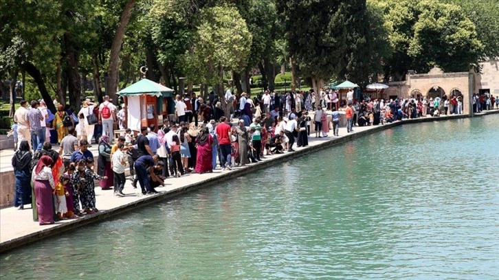 Bayram dolayısıyla Türkiye'nin farklı kentlerinden Şanlıurfa'ya gelen misafirler, doğal akvaryum olmasının yanında inanç turizminde de önemli bir yere sahip tarihi Balıklıgöl'ü ziyaret etti.