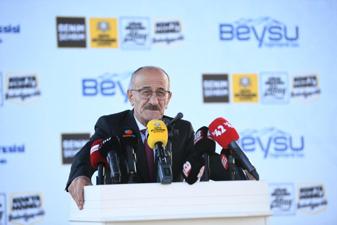 Başkan Altay, Beyşehir Gölü’nde yürütülen çalışmalara da değinerek, “Özellikle göl ve çevresine de çok ciddi bir yatırım gerçekleştiriyoruz. Açılışını henüz gerçekleştiremedik ama Beyşehir’imizin içme suyunu sağlayan arıtma tesisimizde çok ciddi bir yenileme çalışması yaptık, tamamladık. İnşallah bir sonraki gelişimizde onu da açmayı planlıyoruz. Yine Beyşehir Gölü etrafında özellikle insan kaynaklı suların gölü kirletmemesi adına Çevre, Şehircilik ve İklim Değişikliği Bakanlığı’mızla birlikte bir master plan çerçevesinde atık su arıtma tesisleri inşa ediyoruz. Huğlu ve Üzümlü’yü tamamladık. İnşallah devamındaki atık su arıtma tesislerinin tamamlanması, kalan kısımların da foseptikle halledilmesi ve Konya tarafından Beyşehir Gölü’ne insan kaynaklı bir kirletme olmaması için çaba sarf ediyoruz. 2028 yılına geldiğimizde bunu başarmış olacağız. Bu bir taraftan gölün kirlenmesini önlerken bir taraftan da göle aslında temiz su deşarjı yaparak gölü de besleyen bir yapı oluşturuyor” dedi.