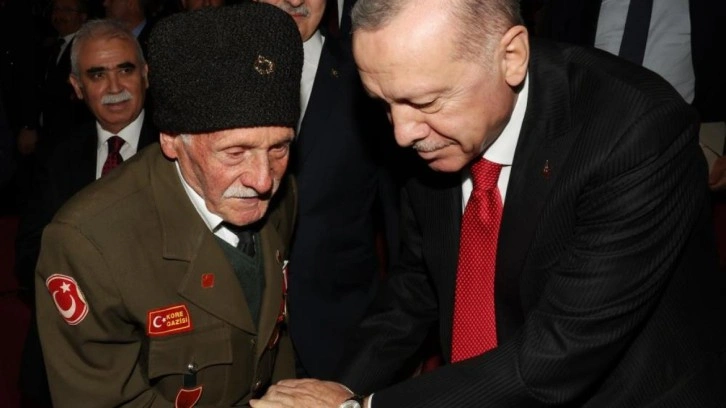 Cumhurbaşkanı Erdoğan, Kore Gazisi Pirağa Uzun ile yakından ilgilenerek selamlaştı. Daha sonra Gazi Uzun ile Cumhurbaşkanı Erdoğan hatıra fotoğrafı çekildi.