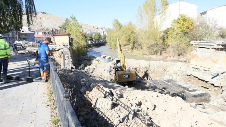 Zahit Mahallesi'nde, Çoruh Nehri üzerine kurulu taş köprünün yenilenmesi çalışmaları sırasında kazı yapan iş makinesi operatörü, alanda top mermisi olduğunu fark etti.