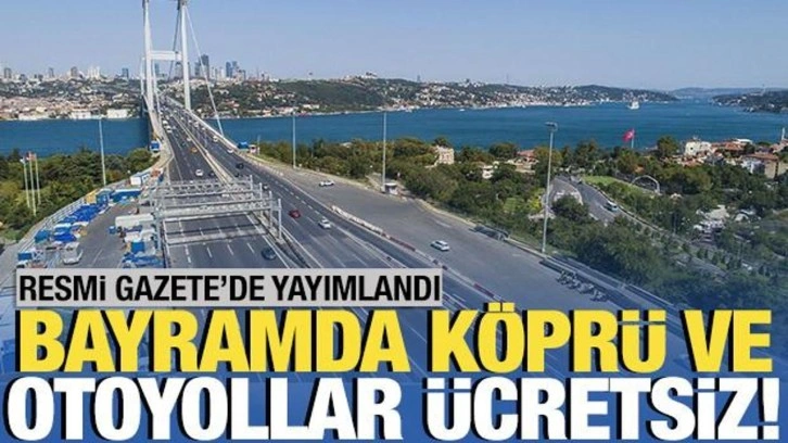 Resmi Gazete'de yayımlanan Cumhurbaşkanı Kararı'na göre, Ramazan Bayramı tatili süresince Karayolları Genel Müdürlüğü'ne bağlı otoyollar, İstanbul'da köprüler ve bazı metro-tren hatları ücretsiz olarak kullanılacak.