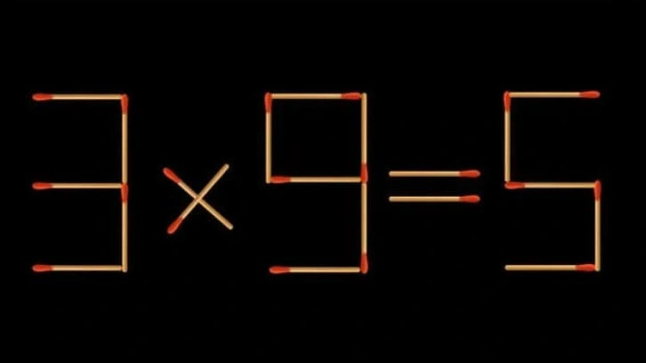 Yukarıdaki görselde de gördüğünüz gibi elimizde “3x9=5” şeklinde bir denklem var. Amacımız sadece bir kibrit çöpü hareket ettirerek bu denklemi doğru hale getirmek. İlk bakışta her ne kadar zor gelse de detaylı bir inceleme ile doğru hamleyi siz de fark edeceksiniz!
