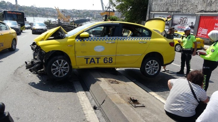 İddiaya göre Şişhane'de rampa aşağı indiği esnada freni patlayan taksi önce demir bariyerleri yıkmasının ardından orta refüje çıktı.