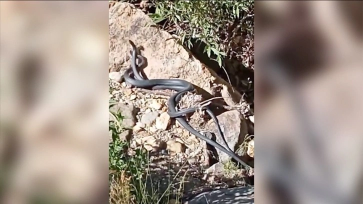 Bingöl'de birbirine dolanan iki yılanın "dansı" görüntülendi