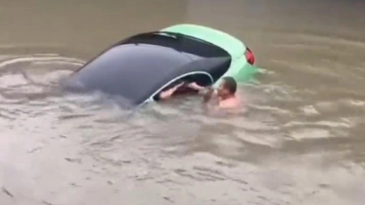 Şiddetli yağışlar Çin'in Lianyungang şehrinde su baskınlarına neden oldu. Bir sürücü, boynuna kadar su dolan aracında mahsur kaldı. Kadın boğulmak üzereyken bir adam suya atladı ve camı kırarak sürücüyü kurtardı!