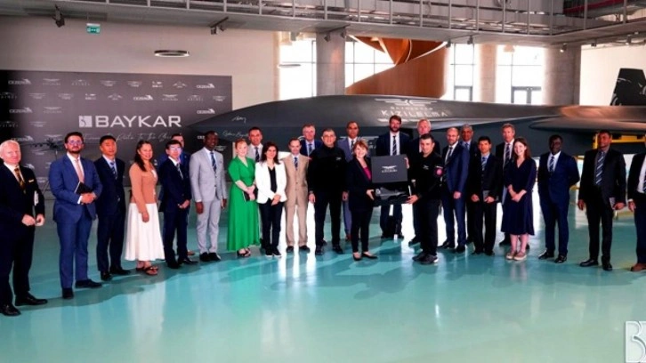 Baykar'dan yapılan paylaşımda, "Birleşik Krallık'ın Ankara Büyükelçisi Sn. Jill Morris ve Kraliyet Savunma Çalışmaları Koleji Heyeti, Özdemir Bayraktar Milli Teknoloji Merkezi'mizi ziyaret etti.