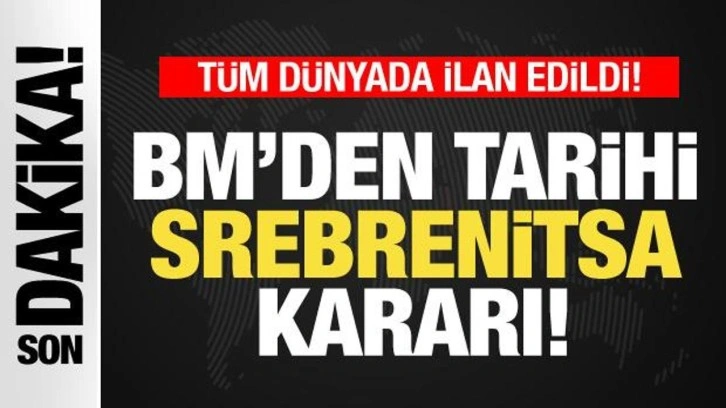 Son dakika Birleşmiş Milletler haberleri: Birleşmiş Milletler (BM) Genel Kurulu, 11 Temmuz'un "Srebrenitsa Soykırımı'nı Anma Günü" ilan edilmesi talep edilen karar tasarısını kabul etti.