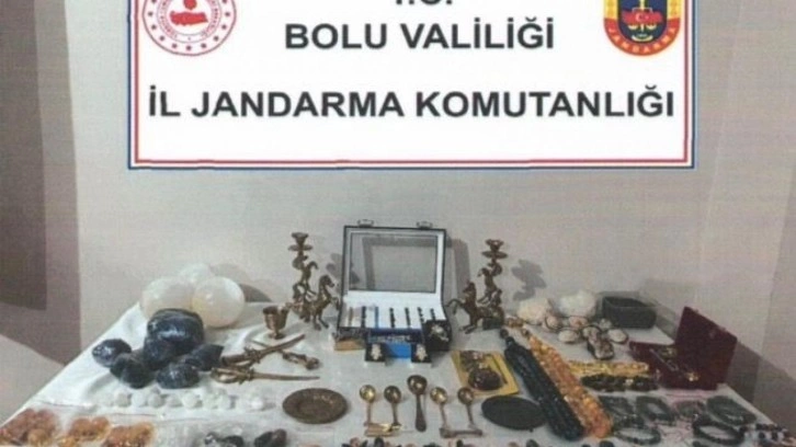 Adreste yapılan aramalarda 500 gram altın tozu, 335 adet değerli taş ve 13 adet tarihi eser niteliğinde obje ele geçirildi.