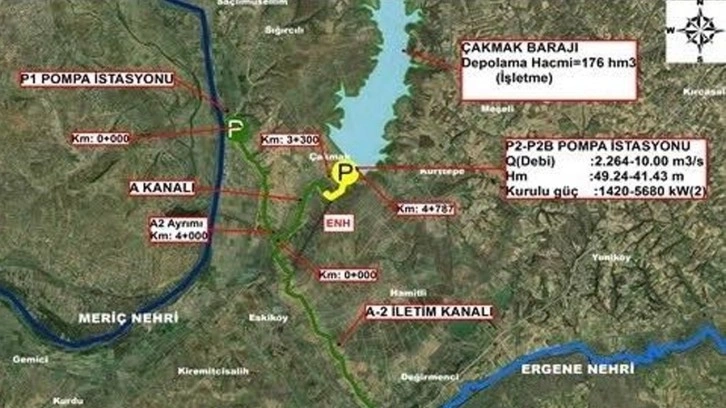 Proje çerçevesinde Meriç Nehrinden, kış aylarında P1 Pompa istasyonu ile alınan sular, A2 iletim kanalına verilecek ve A2 iletim kanalından alınan sular, A iletim kanalına verilerek 169.85 hm/yıl su P2B pompa istasyonu ve baraj dipsavağı vasıtasıyla Çakmak Barajı rezervuarına terfi edecek. Projenin Sulama sahası Uzunköprü ve Meriç ilçeleri ile Kırklareli Pehlivanköy ilçelerine hizmet edecek. Bölge insanına ek gelir sağlayacak Çakmak Barajı Sulaması inşaatı işinin tamamlanması ile hem tarlalardaki verim artarak, hem de yörede ürün çeşitliliği sağlanacak.