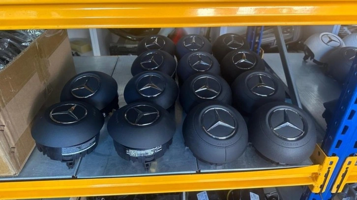 Depoda yapılan aramada, 619 gümrük kaçağı araç airbag, 324 araç aksı, 232 araç stop farı, 120 göğüs paneli, 100 direksiyon simidi, 30 araç arması, 20 eksantrik, 7 far beyni ele geçirildi.