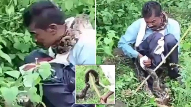 Hindistan'ın Madya Pradeş eyaletinde bir adam, çalılıklara tuvaletini yaparken 5 metrelik pitonun saldırısına uğradı.