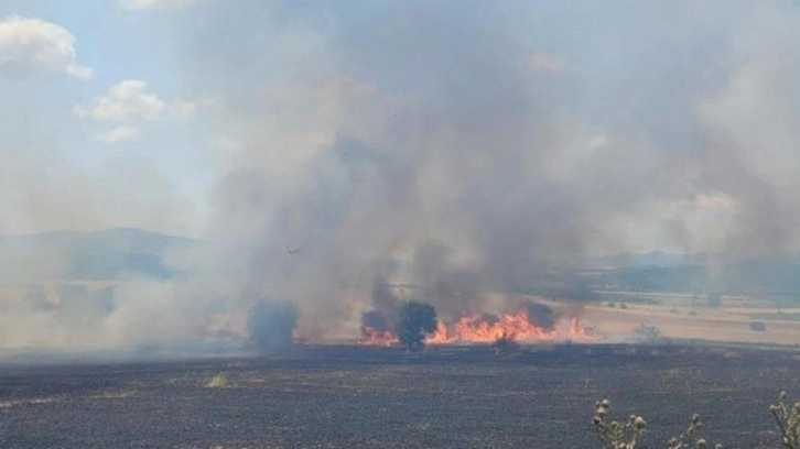 Çanakkale'nin Biga ilçesi Değirmencik ve Kemer köyleri yakınlarındaki tarım arazisinde saat 11.30 sıralarında henüz bilinmeyen nedenle yangın çıktı.