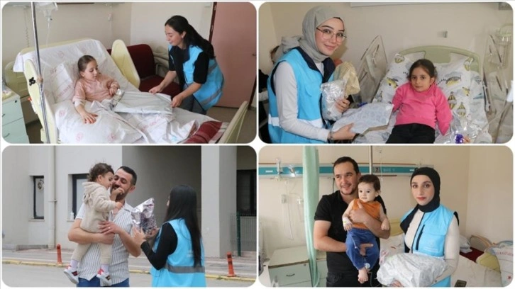 Çankırı'dan üniversite öğrencileriyle bayram öncesi hastanede yatan çocukların göldürdü.
