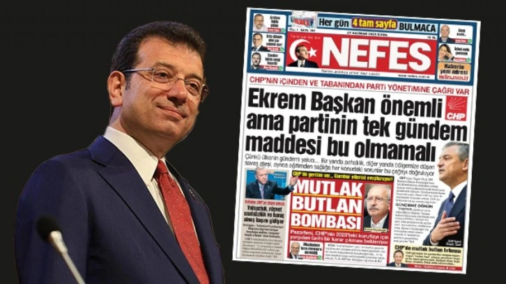 Bugün "Ekrem başkan önemli ama partinin tek gündem maddesi bu olmamalı" manşetiyle okuyucularının karşısına çıkan Nefes Gazetesi, CHP yönetimine operasyon çekti. Ekrem İmamoğlu'nun parti için 'önemli' bir isim olduğunu ancak partinin tek gündeminin bu olmaması gerektiğini söyleyen gazete, vatandaşın sorunlarına odaklanılması gerektiğini belirtti.
