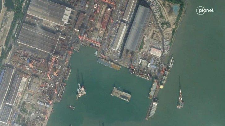 CNN'de yer alan habere göre Planet Labs'ın uydu görüntüleri, güneydeki Guangdong eyaletinde Longxue Adası'ndaki Guangzhou Shipyard International'da inşa edilmekte olan büyük, üstü açık düz bir gemiyi gösteriyor.