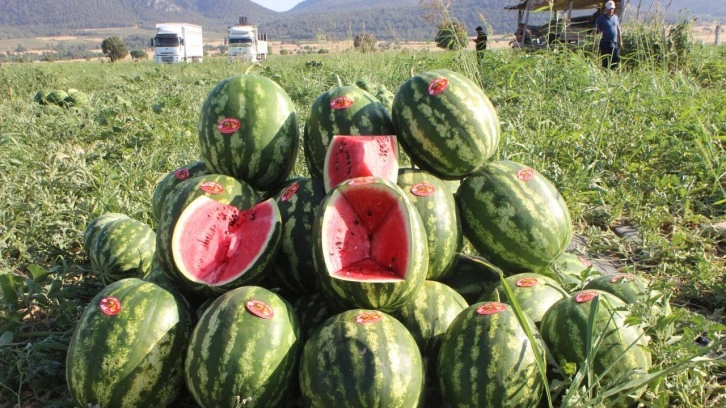 Tüccarlar tarafından alınarak kamyonlara yüklenen karpuzlar, İstanbul başta olmak üzere birçok kente götürülerek manav, market ve pazarlarda tüketiciye buluşturuluyor.
