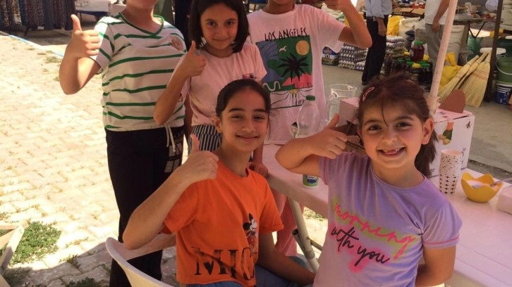 Ailelerinin yardımıyla evde limonata hazırlayan çocuklar, ilçede salı günleri kurulan pazarda 3 hafta satış yaptı.