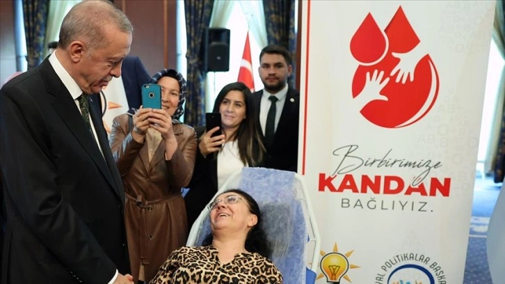 Kan bağışında bulunanlarla bir süre sohbet eden Erdoğan, vatandaşlarla hatıra fotoğrafı çektirdi.