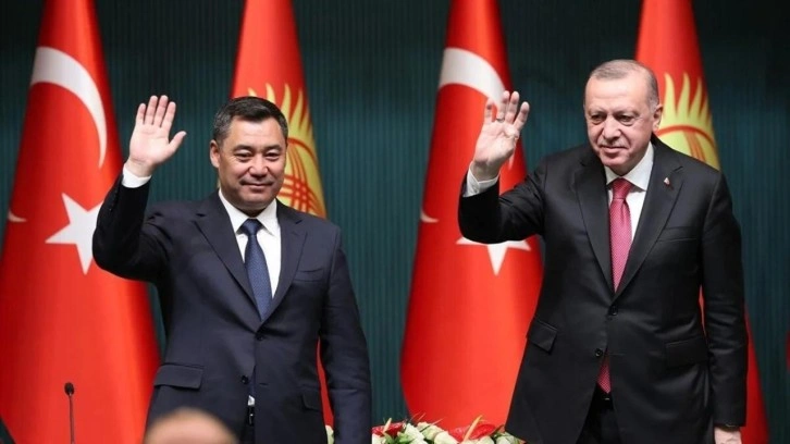 Erdoğan'ı, Bişkek-Manas Uluslararası Havalimanı'nda Kırgızistan Cumhurbaşkanı Sadır Caparov ve eşi Aygül Caparova ile Türkiye'nin Bişkek Büyükelçisi Ahmet Sadık Doğan karşıladı.