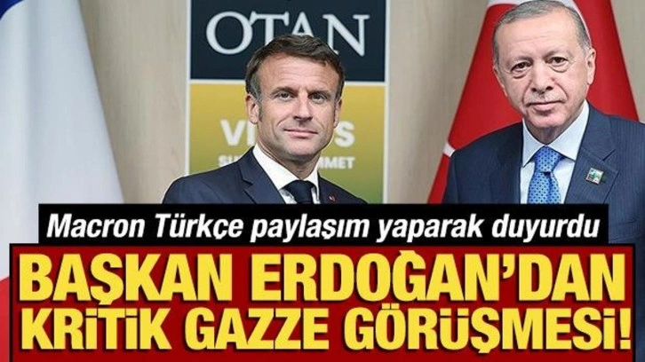 Macron, görüşme sonrası sosyal medya platformu X üzerinden Türkçe yaptığı açıklamada, "Az önce Cumhurbaşkanı Erdoğan ile Gazze'deki durum ve iki devletli çözüm konferansı perspektifi hakkında görüştüm. İsraillilerin ve Filistinlilerin barış ve güvenliği için her şey yapılmalıdır." ifadelerini kullandı.