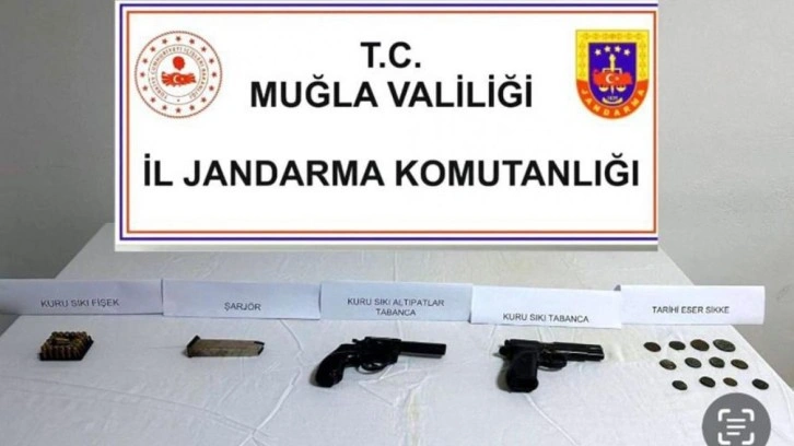 Yapılan aramada, 12 adet Roma dönemine ait sikke, 2 adet kurusıkı tabanca, tabancaya ait şarjör ve 21 kurusıkı tabanca fişeği ele geçirildi. Datça Cumhuriyet Başsavcılığınca yürütülen faaliyet ile ilgili adli işlemlere başlandı.