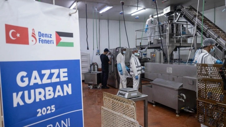 Dünyanın birçok ülkesinden Deniz Feneri Derneğine bağışlanan kurbanlıklar, Birleşik Arap Emirlikleri'nin Dubai şehrinde konserve yapılarak Gazze'deki ihtiyaç sahiplerine ulaştırılıyor.