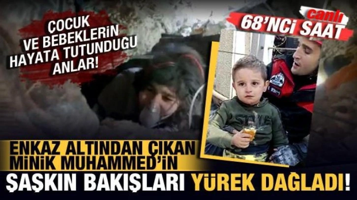 ENKAZDAN KURTARILAN MİNİK MUHAMMED'İN ŞAŞKINLIKLA ETRAFI İZLEDİ