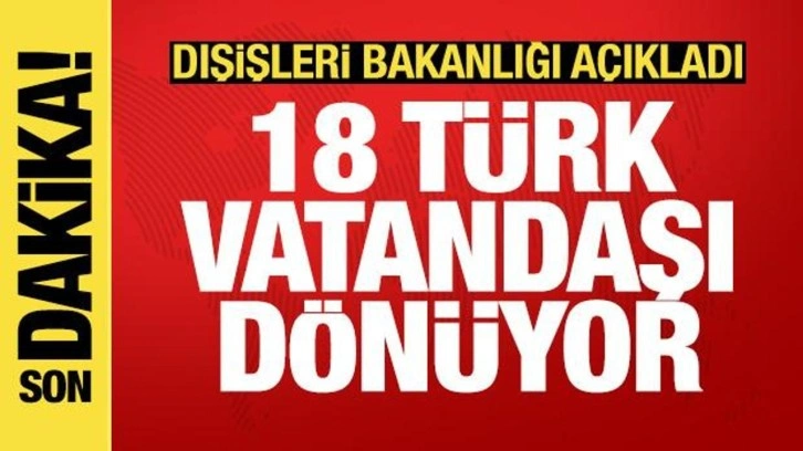 Son dakika haberi... Dışişleri Bakanlığı Sözcüsü: 18 vatandaşımızın Türk Hava Yolları tarafından düzenlenecek özel seferle yarın öğleden sonra ülkemize gelmeleri öngörülüyor.