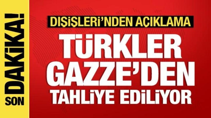 Dışişleri Bakanlığı, Gazze'deki Türk vatandaşlarının tahliyesine başlandığını, 44 kişinin Refah Sınır Kapısı'ndan Mısır'a geçtiğini açıkladı. Türkler, önce Kahire'ye, oradan da Türkiye'ye getirilecek.