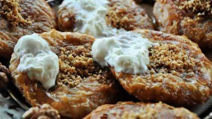 Melengüccek tatlılarınızın üzerini manda kaymağı ile süsleyin. Dilerseniz bu aşamada üzerine ceviz veya fındık da serpebilirsiniz.