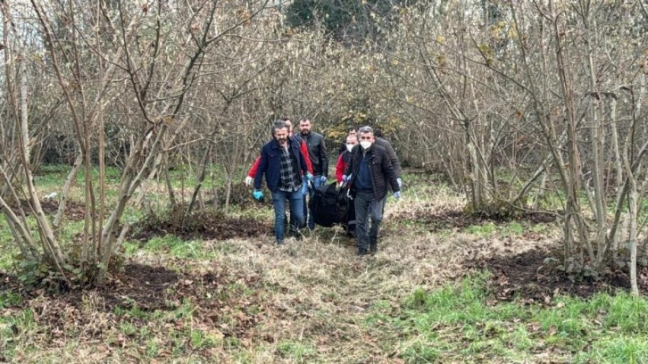 Ormanlık alanın yanı başında bulunan fındık tarlasını temizleyen kişinin bulduğu ceset sonrasında bölgeye sağlık, polis ve olay yeri inceleme ekipleri sevk edildi.