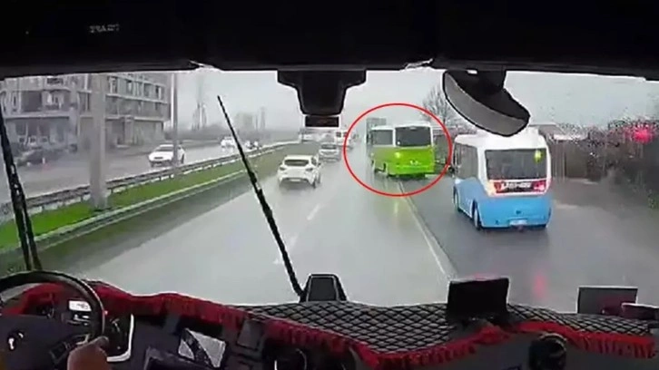TIR sürücüsü korna çalarak minibüs sürücüsüne tepki gösterdi. TIR sürücüsünün korna çalmasına sinirlenen minibüs sürücüsü ise defalarca TIR'ın önüne geçip ani fren yaparak durdurmaya çalıştı. İçinde yolcuların da bulunduğu minibüsün trafikteki tehlikeli anları TIR'ın güvenlik kamerasına yansıdı. TIR sürücüsü, kamera tarafından kaydedilen görüntüleri Düzce Belediyesi'ne göndererek şikayette bulundu. Düzce Belediyesi ekipleri, plakası tespit edilen yolcu minibüsüne 8 bin TL para cezası uyguladı. Bu arada polis ekipleri de minibüs sürücüsünün tespit edilmesi için çalışma başlattı.
