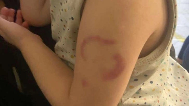 Okulda uyuduğu için öğretmeni tarafından kolunun ısırıldığını ve canının acıdığını söyleyen çocuk, gözyaşlarına hakim olamadı.