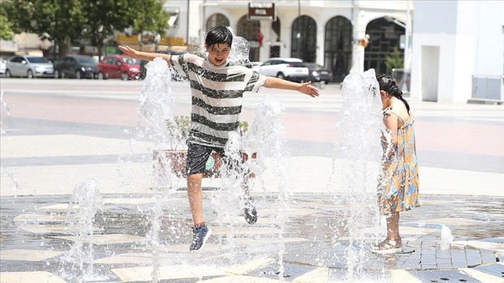 Cumhuriyet Meydanı'ndaki fıskiyede serinlemeye çalışan 10 yaşındaki Volga Poyraz, kentte deniz olmadığını, başka türlü bu sıcağa katlanılamayacağını söyledi.