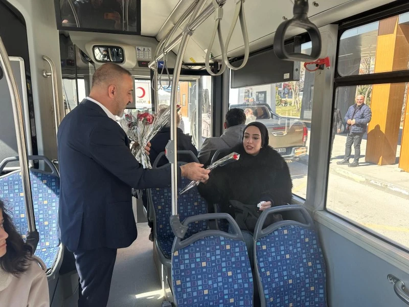 Elazığ Belediye Başkanı Şahin Şerifoğulları’nın talimatları doğrultusunda, Ulaşım Hizmetleri Müdürlüğü ekipleri gün boyunca şehir merkezindeki toplu taşıma noktalarında kadınlara çiçek dağıtarak 8 Mart Dünya Kadınlar Günü’nü kutladı.