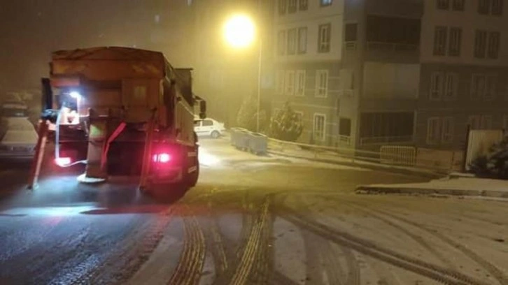 Meteorolojinin uyarı yaptığı Elazığ’da kar yağışı akşam saatlerinde başladı. Kar yağışıyla birlikte Elazığ Belediyesi ekipleri, buzlanmaya karşı kent genelinde tuzlama çalışması yaptı.