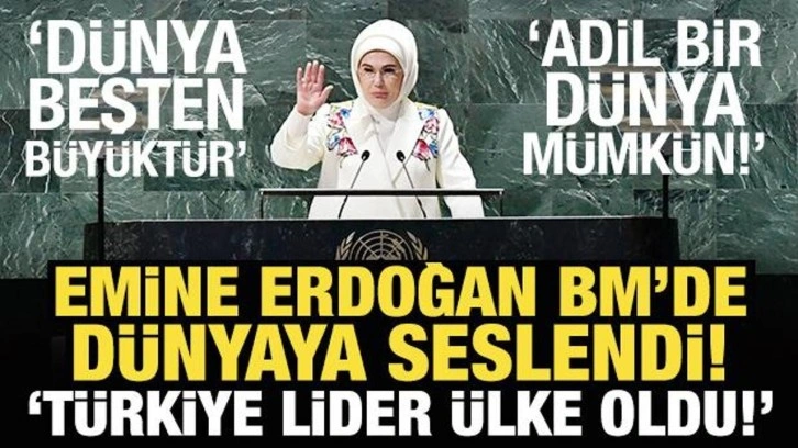 Cumhurbaşkanı Recep Tayyip Erdoğan’ın her fırsatta dile getirdiği BM reform önerisinin iklim değişikliğiyle mücadele kapsamında ayrı bir önem kazandığına dikkati çeken Emine Erdoğan, "Ben de bu kürsüden bir kez daha, bu çağrıyı yinelemek istiyorum: Dünya, beşten büyüktür ve daha adil bir dünya mümkündür! Nasıl ki, dünya ortak evimiz ise, bu evi, içine düştüğü yangından kurtarmak da, ortak mücadelemiz olmalıdır. " mesajını verdi.