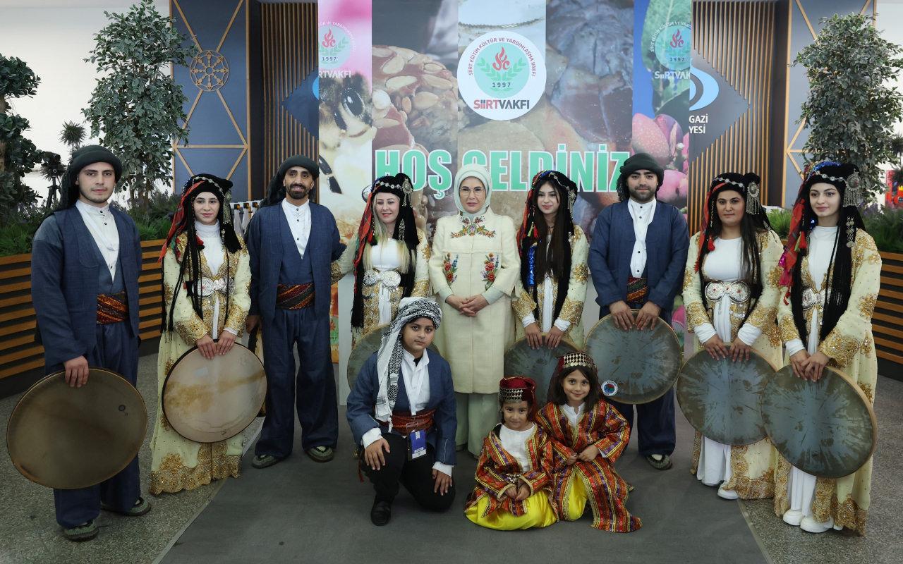 Siirtli hemşehrilerine seslenen Erdoğan, "O, bizim sarp dağların başına konmuş bembeyaz karları, kırmızıya bürünmüş nar bahçeleri ve yemyeşil fıstık ağaçlarıyla, gören herkesi, hayran bırakan veleyemizdir. Hepimizin ortak sevdası ve gururudur. Her kültürün, inancın ve dilin, kendini evinde hissettiği bir ana kucağıdır. Tenceremizden Siirt yemeklerinin kokusu yükselir, babamın diline bir Siirt türküsü dolanır, Siirt'in zarafeti annemin ellerinde şekillenir, nakış olurdu. Annem ve babam, geleneklerimizin yaşatılması ve biz çocuklarına öğretilmesinde hep çok hassas davrandılar. Ailemin Siirt'e yaptığı sık ziyaretler çocukluğumun en güzel anılarıdır. Misafirperverliğin, ikram kültürünün, komşuluk ilişkilerinin en nadide örneklerini bu ziyaretlerde tecrübe ettim. Dayanışmanın dertleri küçültüp, sevinçleri büyüttüğünü Siirt'in munis insanlarında gördüm. Bir Siirt kızı olmaktan hayatım boyunca hep çok gurur duydum. Şunu çok rahatlıkla söyleyebilirim ki bugün yürüttüğüm tüm projelerin temelini çocukluğumda öğrendiğim bu değerler oluşturuyor" dedi.
