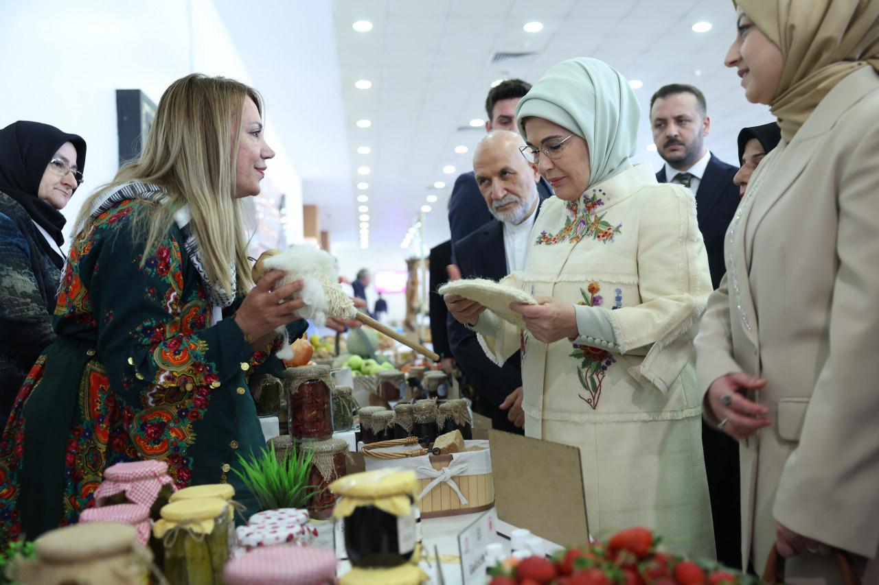 Konuşmasının ardından sergiyi gezen Erdoğan, Siirt yöresine özgü yemeklerin ve ürünlerin bulunduğu stantları ziyaret etti.